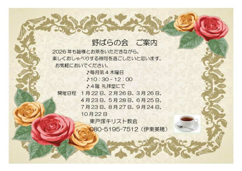 この”野ばら”というかわいいイメージの通り、中高年の華の私たちが心から歌っております。2000年に地域の方達と一緒に歌う会として始められた会です。